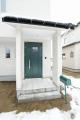 真っ白の外壁にグリーンの玄関ドアが個性的な外観になりました。