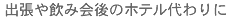 仕事や接待等で帰りが遅く、ホテルに宿泊する機会が多い方には、